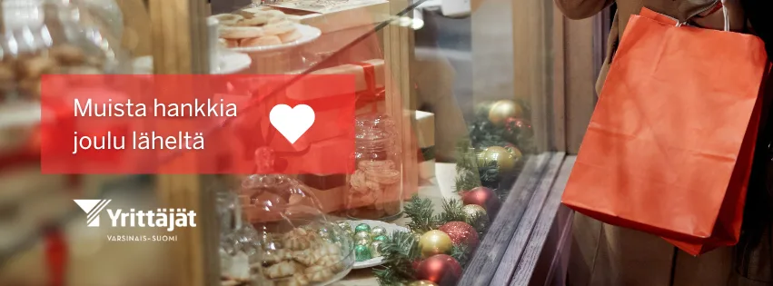 Paras kiitos oman kunnan pk-yrittäjille on hankkia joulu mahdollisimman läheltä: tee ruoka-, lahjatavara- ja lahjakorttiostokset vastuullisesti omasta kunnasta tai alueelta. Tämä sataa yhteiseen laariin kuin lumi joulun alla. Elinvoiman lisäksi sinäkin lisäät hyvää joulumieltä – myös yrittäjille.