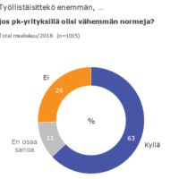63 prosenttia pk-yrityksistä sanoo työllistävänsä enemmän, jos normeja olisi vähemmän, kertoo tuore Yrittäjägallup. Suomen Yrittäjät vaatii, että yritysten sääntelykustannuksia on…