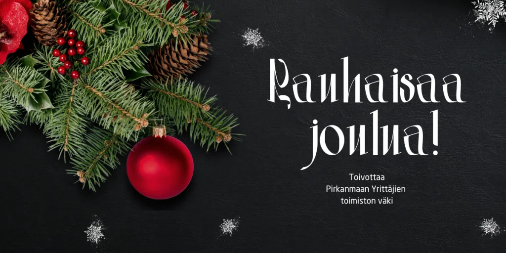 Joulunpyhinä 24.-26.12.2025, uutena vuotena 1.1.2026 sekä loppiaisena 6.1.2026 Yrittäjien palvelut on suljettu. Kiireettömissä asioissa suosittelemme lähettämään sähköpostia: pirkanmaa(at)yrittajat.fi.