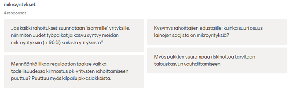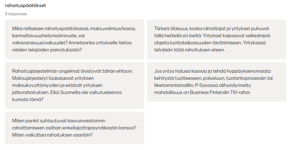 Rahoitusfoorumi aineisto Savon Yrittäjien jäsenkyselyn vastaukset – RahoitusfoorumiLataa Rahoitusfoorumi_Finnvera_esitysLataa Finnvera Rahoituksen saatavuus keskusteluttaaLataa Fennia_Asiakasrahoitus materiaali_kuopio 29102025Lataa Siltaraha_Pohjoissavon yrittäjätLataa Swedbank presentaatioLataa Tapahtuman Menti-vastaukset