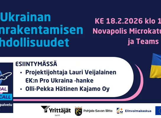 Suomalaiset ja pohjoissavolaiset yritykset mukaan Ukrainan jälleenrakentamiseen! EK on käynnistänyt Pro Ukraina -hankeen, jonka tavoitteena on saada yli 200 suomalaista…