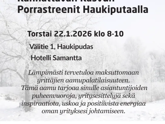 Tervetuloa maksuttomaan yrittäjien aamupala tilaisuuteen Haukiputaalle Hotelli Samanttan tiloihin. Tilaisuuden aikana kuulet kannattavan liiketoiminnan asiantuntijoiden puheenvuoroja, yritysesittelyjä sekä saat intoa,…