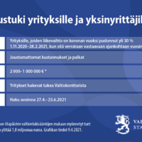 Yritykset ovat käyttäneet aktiivisesti alueiden tarjoamaa koronaneuvontaa. Alueesi Korona-apu-verkosto tarjoaa maksutonta ja luottamuksellista neuvontaa esimerkiksi tukien hakemisessa.