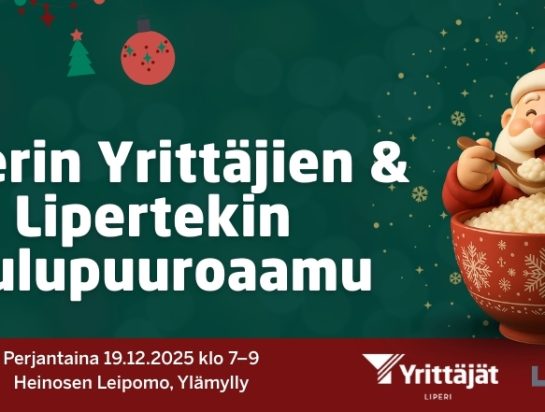 Liperin Yrittäjät ja Lipertek kutsuvat Liperiläiset yrittäjät joulupuurohetkeen perjantaina 19.12.2025 klo 7–9 Ylämyllyn Heinosen Leipomolle. Tule aloittamaan päivä rennosti hyvän…