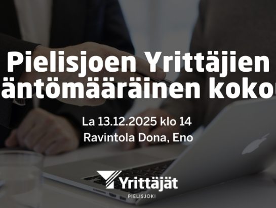 Hyvä jäsen, vuosikokous teki 15.11.2025 päätöksen yhdistyksen purkamisesta ja sulautumisesta Joensuun Yrittäjät ry:n kanssa. Sääntöjen edellyttämä toinen kokous asiasta pidetään la 13.12.2025…