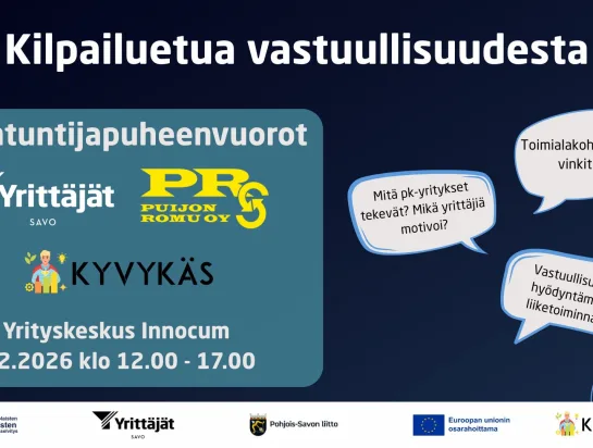 Savon Yrittäjien Kestävyyttä kohti - selvitystyö järjestää yhdessä KYVYKÄS-hankkeen kanssa yhteisen "Kilpailuetua vastuullisuudesta" -tapahtuman 5.2.2026 Siilinjärven Yrityskeskus Innocumissa. Tule kuulemaan…