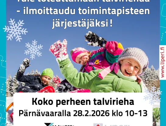 Liperin kunta järjestää Liperin Yrittäjät ry:n kanssa lapsiperheille suunnatun, maksuttoman talviriehatapahtuman jälleen Pärnävaaran urheilukeskuksella (Pärnävaarantie 32, Ylämylly) lauantaina 28. helmikuuta 2026…