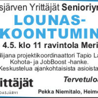 Pudasjärven yrittäjien senioriyrittäjät järjestää lounaskokoontumisen keskiviikkona 4.5.2022 klo 11 ravintola Meritassa. Vierailijana projektikoordinaattori Tapio Laurila, Kohota- ja JobBoost -hanke. Keskustelua…