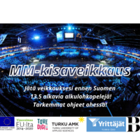 Veikkaa jokaisen Suomen alkulohko-ottelun lopputulos ja avausmaalin tekijä.Lähetä veikkauksesi sähköpostiosoitteeseen lauri.kuusisto@edu.turkuamk.fi 12.5 mennessä. Jokaisesta pelistä on mahdollisuus saada viisi (5)…