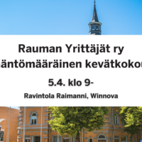 Tervetuloa Rauman Yrittäjät ry:n sääntömääräiseen kevätkokoukseen!Kevätkokous järjestetään tiistaina 5.4.202 klo 9 alkaen.Paikkana toimii Ammattikoulu Winnovan ravintola Raimanni. Paikalla keveä aamupalatarjoilu.…