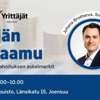 Talousaamu tarjoaa yrittäjälle tiiviin tietopaketin talouden suunnasta ja rahoituksen mahdollisuuksista. Tule kuulemaan, mitä pk-yritysten kasvu vaatii ja millä askelmerkeillä rahoitus saadaan…