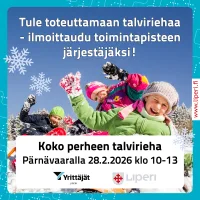 Liperin kunta järjestää Liperin Yrittäjät ry:n kanssa lapsiperheille suunnatun, maksuttoman talviriehatapahtuman jälleen Pärnävaaran urheilukeskuksella (Pärnävaarantie 32, Ylämylly) lauantaina 28. helmikuuta 2026…