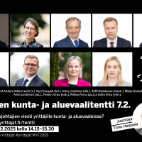 Yhdeksän puolueen puheenjohtajat kohtasivat Suomen Yrittäjien kunta- ja aluevaalitentissä.
