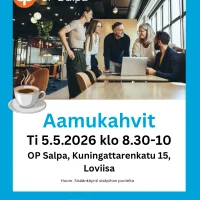 Tervetuloa Loviisan Yrittäjien aamukahveille OP Salpan Loviisan konttorille 5.5. klo. 8.30-10.00. Kuningattarenkatu 15, 07900 Loviisa. Huom. Sisäänkäynti tapahtuu sisäpihan puolelta…