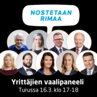 To 16.3. klo 17 Yrittäjien vaalipaneelissa Turussa keskustelemassa ovat Petteri Orpo (kok), Ville Tavio (ps), Aki Lindén (sd), Mauri Kontu…
