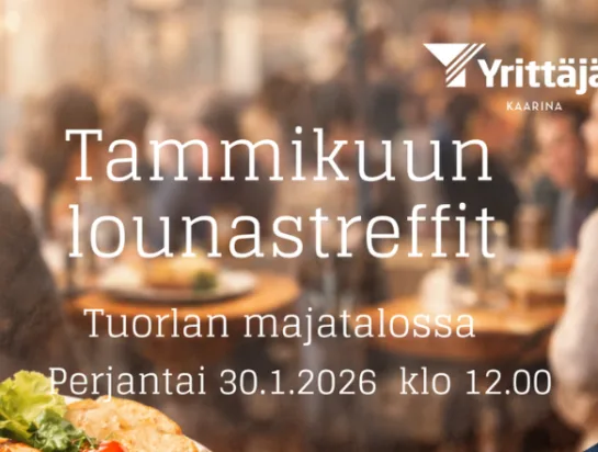 ✨Kaarinan Yrittäjien Tammikuun Lounastreffit✨ Tule lounastamaan mukavassa yrittäjäseurassa - sparrailemaan ja vaihtamaan kuulumisia! Pe 30.1. klo 12 Tuorlan Majatalo, Tuorlantie…