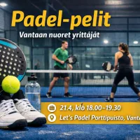 Tervetuloa pelaamaan padelia Vantaan Yrittäjien nuorten yrittäjien rennolle peli-illalle Let’s Padel Porttipuistoon! Illan aikana päästään liikkumaan, pitämään hauskaa ja verkostoitumaan…