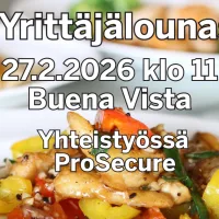 Helmikuun yrittäjälounas yhteistyössä ProSecuren kanssa Maksuton Yrittäjälounas nautitaan perjantaina 27.2. klo 11 Buena Vistassa. ProSecuren tarjoaman lounaan lomassa voit keskustella…