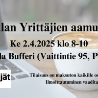 Hyvä yrittäjäkollegamme! Jyväskylän, Jyvässeudun ja Korpilahden Yrittäjät sekä K-S Yrittäjänaiset kutsuvat Sinut keväisille aamukahveille torstaina 8.5.2025 klo 8:00 - 9:30…