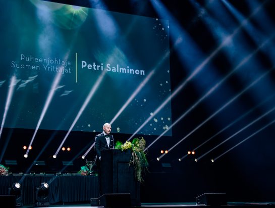 Suomen Yrittäjien puheenjohtaja Petri Salminen piti juhlapuheen lauantaina Varsinais-Suomen Yrittäjägaalassa Logomossa.