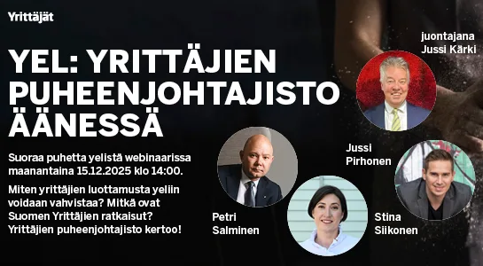 Suomen Yrittäjät järjestää joulukuussa kaksi YEL-aiheista webinaaria.