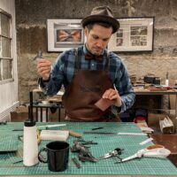 Jyri Naskalilla on kolme ammattia: nyrkkeilijä, parturi-kampaaja ja käsityöläinen. Hän valmistaa vanhoista nyrkkeilyhanskoista ja -säkeistä nahkaisia juhla-asusteita.