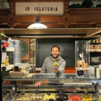 Francesco Intini ja Axel Lindholm pyörittävät Espoossa La Gelateria -konttikahviloita, joiden luukulta he kauppaavat jäätelöä vuoden ympäri.