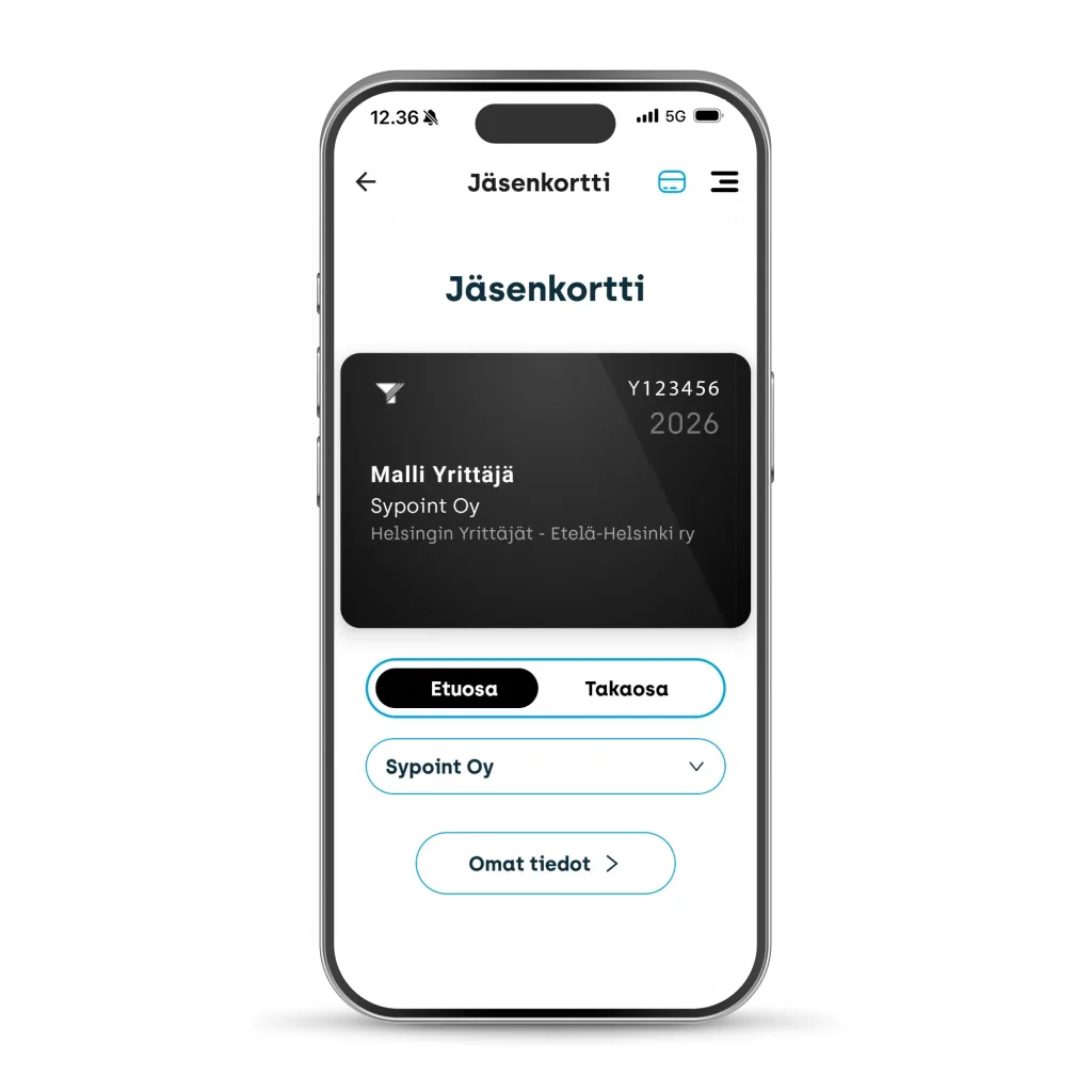 Yrittäjät-sovelluksessa jäsenkortti on kätevästi puhelimessasi. Voit siis tarvittaessa näyttää jäsenyytesi suoraan sovelluksesta.