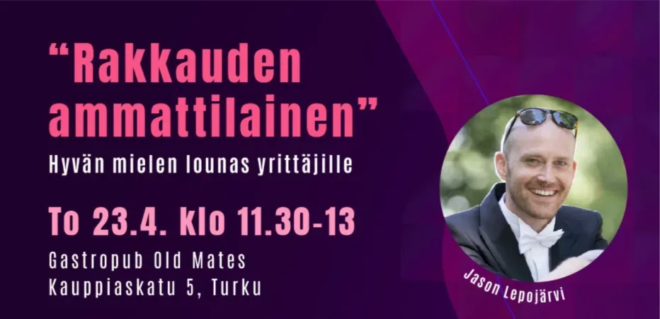 Tarjolla herkullinen lounas, vapaata verkostoitumista sekä mielenkiintoinen alustus rakkauden ammattilaisen, Jason Lepojärven johdolla! Musiikkia tapahtumassa soittaa myös trubaduuri JP Suominen.