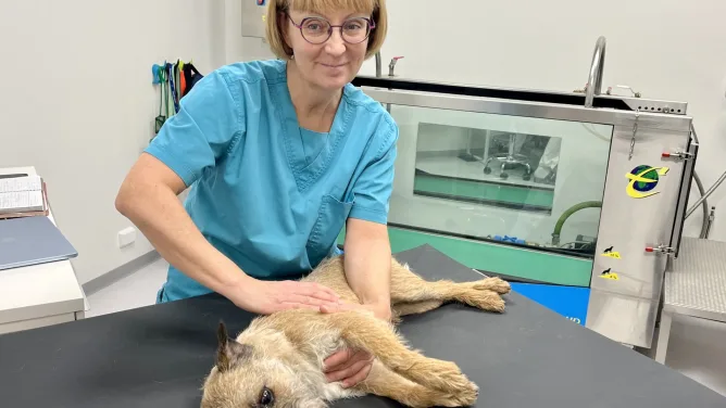 Borderterrieri Hero pötköttelee hoitopöydällä ja nauttii koirahieroja Tytti Kuusen varmoista ja osaavista otteista. Agilityä harrastava Hero on yksi monista koirista, jotka käyvät säännöllisesti Kuusen…