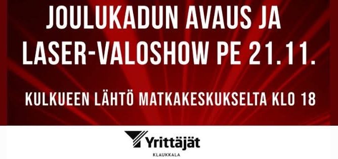 Klaukkalan joulukatu on järjestetty vuodesta 1997 lähtien. Avajaiset aina perinteisesti marraskuun lopulla.