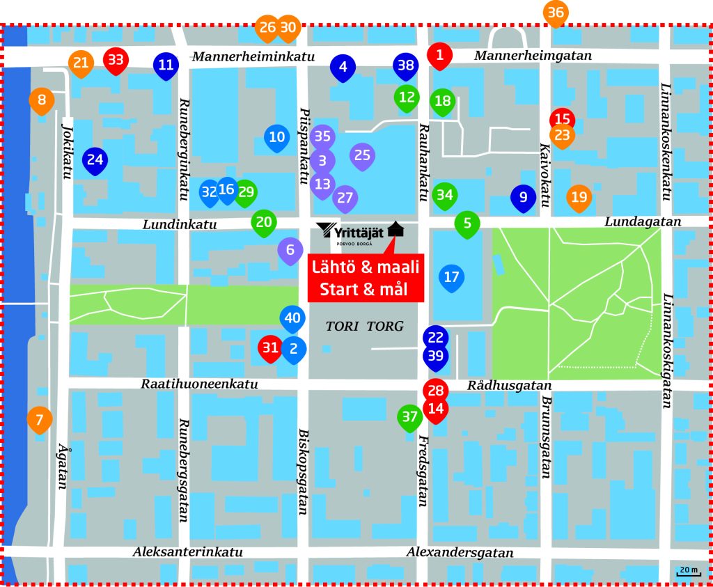- Aloita torilta – hae kartta ja ohjeet Porvoon Yrittäjien teltalta.