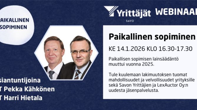 YRITTÄJÄ, tule mukaan omiesi pariin! Liity Yrittäjiin.