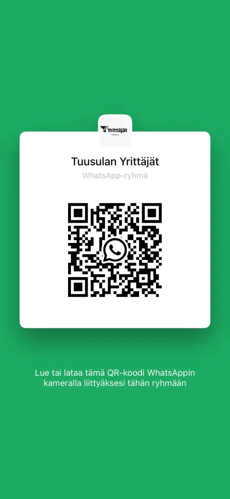Voit liittyä kanavaamme oheisen linkin kautta tai ottamalla kuvan QR-koodista ja pääset mukaan Tuusulan yrittäjien omaan yhteisöön: