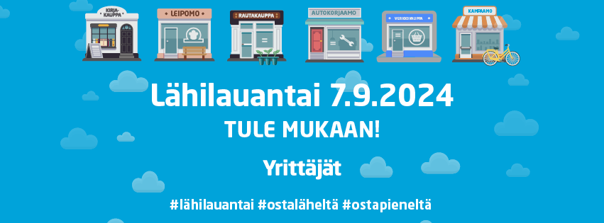 7.9.2024 vietetään taas valtakunnallista Lähilauantaita. Päivän tarkoitus on tukea paikallista yrittäjyyttä ja muistuttaa siitä, miten tärkeää on, että oman kotikunnan tai -kaupungin tarjolla olevat palvelut säilyvät lähellä myös tulevaisuudessa. Lue alta mitä kaikkea kivaa Ulvilalaiset / paikalliset yrittäjät tarjoavat iloksesi kyseisenä päivänä!