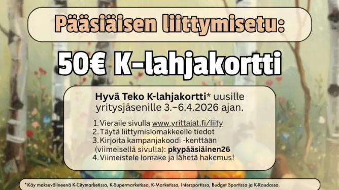 YRITTÄJÄ, tule mukaan omiesi pariin! Liity Yrittäjiin.