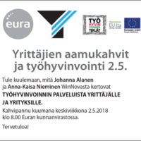 Tule yrittäjien aamukahvitilaisuuteen. Tällä kertaa puhutaan työhyvinvoinnista.