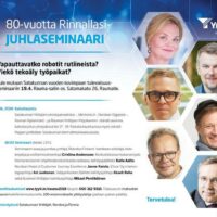 Vapauttavatko robotit rutiineista? Viekö tekoäly työpaikat? Vielä ehdit ilmoittautua 80-vuotis juhlavuoden Rinnallasi-juhlaseminaarimme 19.4. Raumalla. Lue lisää ja tutustu puhujiin.