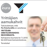 Tervetuloa keskiviikkona 7.3. kello 8 Euran kunnanvirastolle yrittäjien aamukahvitilaisuuteen!