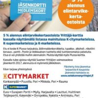 Nyt myös Merikarvian oma K-market tarjoaa Yrittäjien jäsenetua -5 % elintarvikeostoista ja plussat kaupan päälle , Yrittäjien jäsenkorttia ajoissa kassalla…