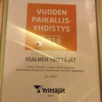 Iisalmen Yrittäjät Vuoden 2016 paikallisyhdistys