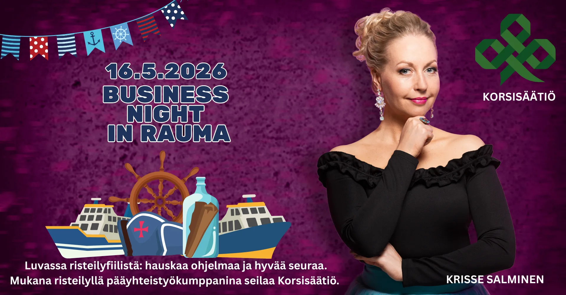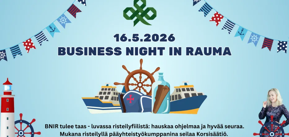 Business Night In Rauma viihdyttää jälleen 16.5.2026! Kevään viihdyttävin verkostoitumisilta tuo yrittäjät yhteen rennoissa risteilytunnelmissa -kulttuurikuppila Brummissa.