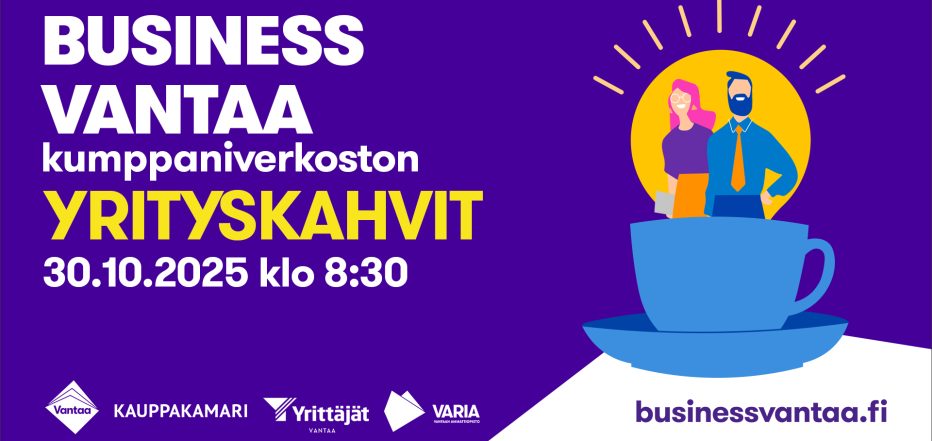 Etsitkö toimitilaa Vantaalta? Vastasitko kyllä, mutta rahoitus mietityttää? Tervetuloa Business Vantaa yrityskahveille 30.10. klo 8.30 (aamupala 8:15). Tapahtumassa pureudutaan ajankohtaisiin toimitilatarpeisiin ja rahoitusratkaisuihin!