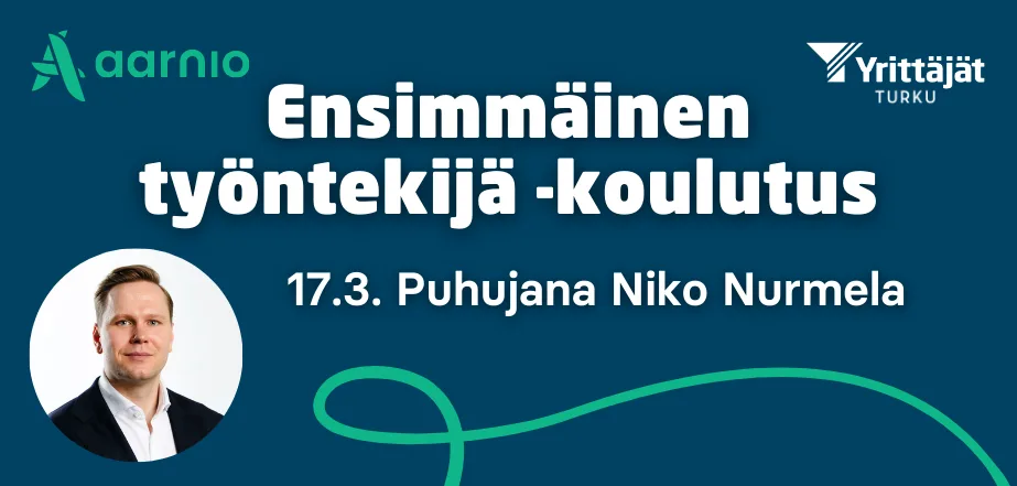 Are you hiring your first employee or would you like to hear about the possibilities of hiring an employee? Turku Entrepreneurs and Tilitoimisto Aarnio are organizing First Employee training for entrepreneurs in the region on March 17. The speaker at the event will be Niko Nurmela, an expert and lawyer from Suomen Yrittäjät.