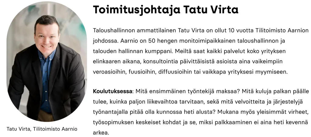 9.30 Tilitoimisto Aarnion tietopaketti kustannuksista, velvoitteista, yleisimmistä virheistä ja työsopimuksesta.