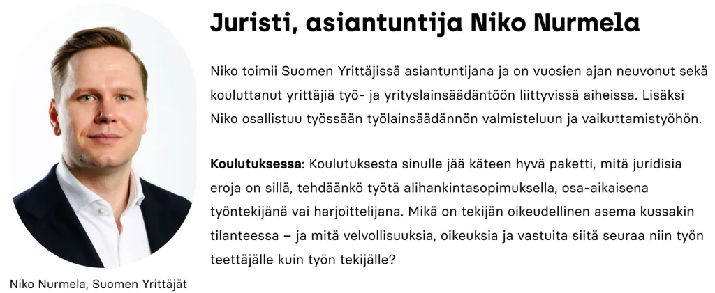 9.00 Suomen Yrittäjät asiantuntijan katsaus ajankohtaisiin ja juridisiin näkökulmiin