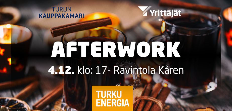 Tapahtuman järjestää Turku Energia, Turun Kauppakamari sekä Yrittäjä-järjestö. Afterworkkeihin on tervetulleita jäsenet, ei-jäsenet ja yrittäjyydestä kiinnostuneet. Ilmoittautuminen on suotavaa, mutta ei pakollista. Mikäli kalenterista vapautuu tilaa vasta samana päivänä, niin tervetuloa mukaan ilman ilmoittautumista! Tilaisuus on ensisijaisesti englanniksi
