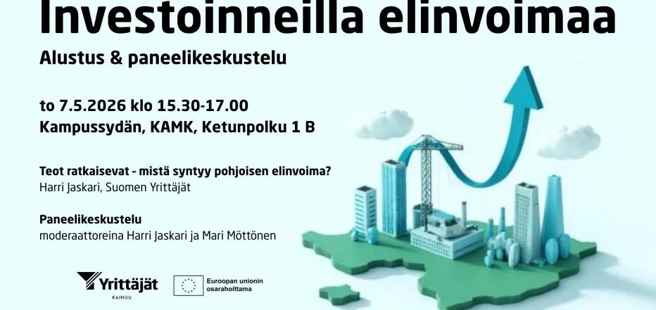 16-16.50 Paneelikeskustelu: Investoinnit liikkeelle – mistä löytyy rahoitus ja rohkeus, moderaattoreina Mari Möttönen ja Harri Jaskari. Panelisteina mukana: