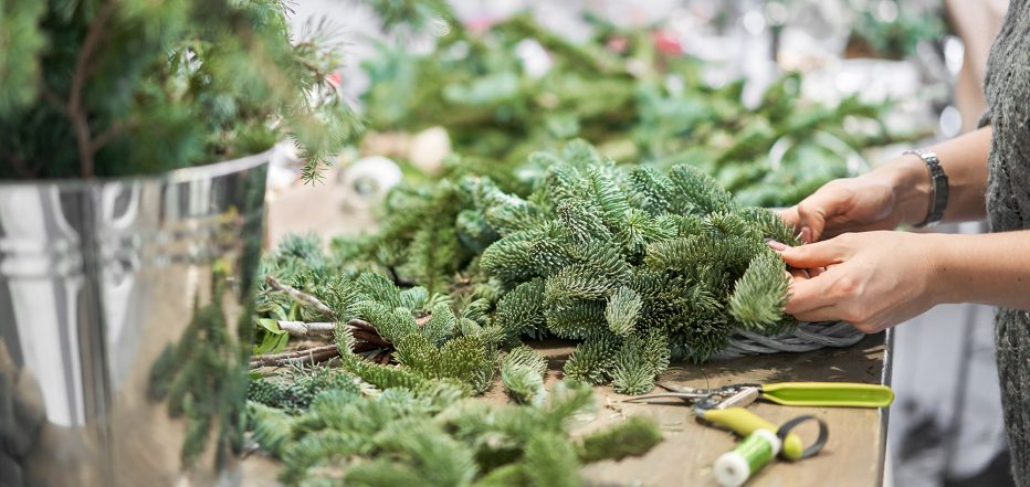 Kaikki tarvikkeet ovat valmiiksi paikan päällä, ota kuitenkin mukaan vaikka kestokassi, jossa saat kranssisi kuljetettua mukavasti kotiin.