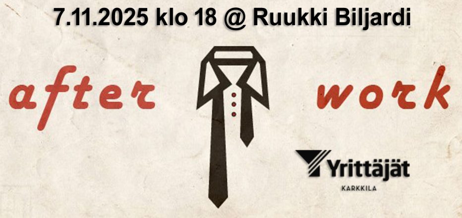 Karkkilan yrittäjien AfterWorkit ovat joka kuukauden ensimmäisenä perjantaina, paikka ilmoitetaan erikseen.